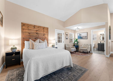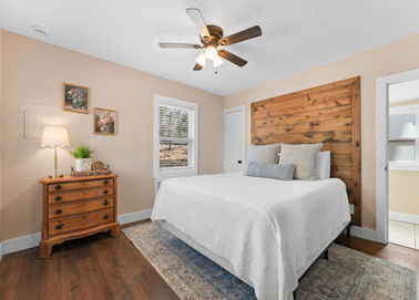 As the pinnacle of our Sunset Hills offerings, The Carriage House combines the best of indoor and outdoor living. With over one-thousand square feet of luxe living space, this cottage is ideal for the ultimate romantic retreat. Indoors, you’ll discover boho/modern in-suite decor, as well as amenity offerings such as a king-sized bed, two HD smart TV's, high-speed internet, full sized refrigerator, electric range, microwave, and a Keurig coffee maker. The outdoor living area is second to none, with its own private patio, personal hot tub, and fire pit. As with all our cottages, The Carriage House is just steps away from our beautiful swimming pond that features an infinity edge and multiple cascading waterfalls.